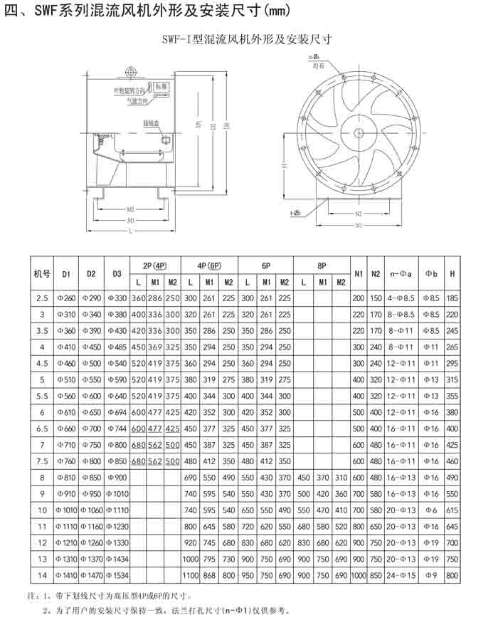 二、SWF(HLF、GXF)-I、II、H 系列高效混流風機